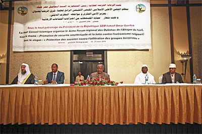 Pour le ministre djiboutien des Affaires Musulmanes, de la Culture et des Biens Waqfs, M. Aden Hassan Adenqui a pris part à l’audience, « cette nouvelle distinction, ainsi quediplôme qui lui a été octroyé ce matin par la délégation soudanaise participant 4ème Forum des Oulémas de l’Afrique de l’Est, sont des signes forts à l’endroit du Président Guelleh quisoutient chaque année l’organisation de ce forum qui aborde la voie à suivre et le traitement commun à apporter aux principales menaces, notamment l’extrémisme et le fanatisme religieux ».