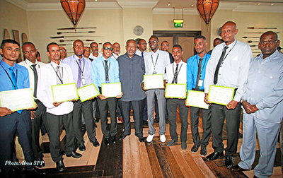 Féru d’art et de culture, le Président de la République, accompagné par la 1ère Dame, Mme Kadra Mahamoud Haid, a félicité les artistes à qui il a personnellement remis une attestation de participation à l’atelier suite à la formation reçue.