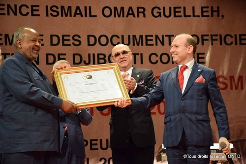 Le Président de la République, Son Excellence Ismail Omar Guelleh, a été auréolé aujourd’hui, jeudi, au Palais du Peuple, Membre Honoris Causa de l’Académie Mondiale du Tourisme.