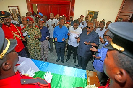 Le Président de la République, Son Excellence Ismail Omar Guelleh, a pris part aujourd’hui, jeudi, à l’enterrement de Feu Barkat Gourad Hamadou, Ancien Premier Ministre djiboutien et une des figures de proue du paysage politique national.