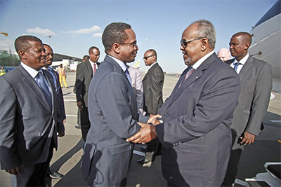 Le Président de la République, Son Excellence Ismail Omar Guelleh, a quitté aujourd’hui, mardi, en début d’après-midi, la capitale à destination d’Ethiopie où, il coprésidera demain, mercredi, avec le Premier Ministre, Chef de Gouvernement de ce pays frère, ami et voisin, M Hailemariam Desalegn, la cérémonie dédiée à la réalisation du tronçon éthiopien du chemin de fer électrique devant relier la République de Djibouti et l’Ethiopie.