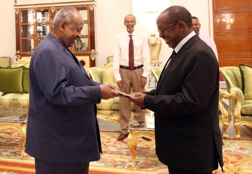 Le Chef de l’Etat, Son Excellence Ismail Omar Guelleh, a reçu aujourd’hui, lundi, en fin de matinée, au Palais de la République, le Président de la Commission Nationale des Droits de l’Homme, M Souleiman Omar Oudin, accompagné de ses principaux collaborateurs.