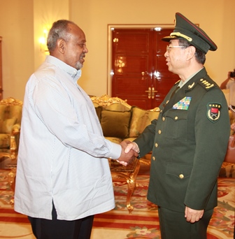 L’entrevue entre le Président de la République, Son Excellence Ismail Omar Guelleh et l’officier supérieur chinois s’est déroulée en présence de l’Ambassadeur de la République Populaire de Chine à Djibouti, Son Excellence Fu Huaginag.