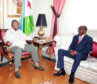 Le Président de la République Son Excellence Ismail Omar Guelleh a reçu aujourd’hui, lundi, au milieu de matinée au Palais Présidentiel, l’actuel Conseiller à la Primature éthiopienne et ex- Ministre des Finances de ce pays ami et voisin, M Soufyan Ahmed, porteur d’un message écrit du Premier Ministre éthiopien, M Hailemariam Desalegn.