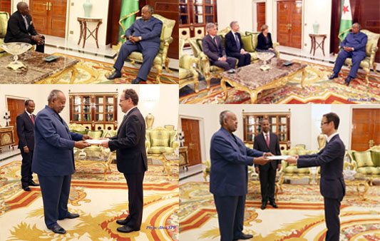 Le Président de la République, Son Excellence Ismail Omar Guelleh, a reçu aujourd’hui, lundi, en fin de matinée au Palais Présidentiel, les Lettres de Créances de 4 nouveaux Ambassadeurs étrangers accrédités auprès de notre pays.