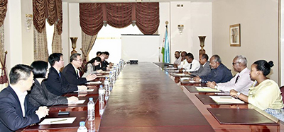 Le Président de la République, Son Excellence Ismail Omar Guelleh, a reçu ce samedi matin au Palais Présidentiel une délégation chinoise de haut niveau conduite par le Professeur Justin Yifu lin, économiste de renommée internationale qui, est actuellement à la tête du Center For New Structural Economics (CNSE).