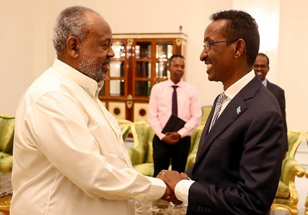 Le Président de la République, Son Excellence Ismail Omar Guelleh, a reçu aujourd’hui, mercredi, en fin de matinée, au Palais Présidentiel, une délégation d’officiels somaliens conduite par le Ministre des Affaires Etrangères de ce pays, M Ahmed Issa Awad.