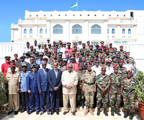 A noter également la présence à cette rencontre du Chef d’Etat major Général des Forces Armées Djiboutiennes (FAD), le Général Zakaria Cheick Ibrahim, du Chef d’Etat major de la Défense et des Chefs d’état major de la Garde républicaine, de la Gendarmerie nationale, de Police nationale, des Gardes Côtés et de la Protection civile.