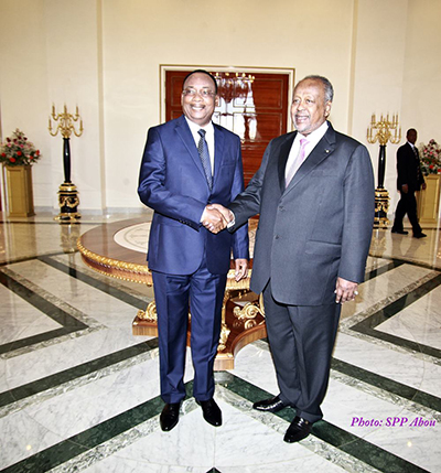 Le Président de la République, Son Excellence Ismail Omar Guelleh, a reçu aujourd’hui, lundi, en milieu d’après-midi, au Palais Présidentiel, son homologue du Niger, M Mahamadou Issoufou, en visite éclair de travail intense à Djibouti.